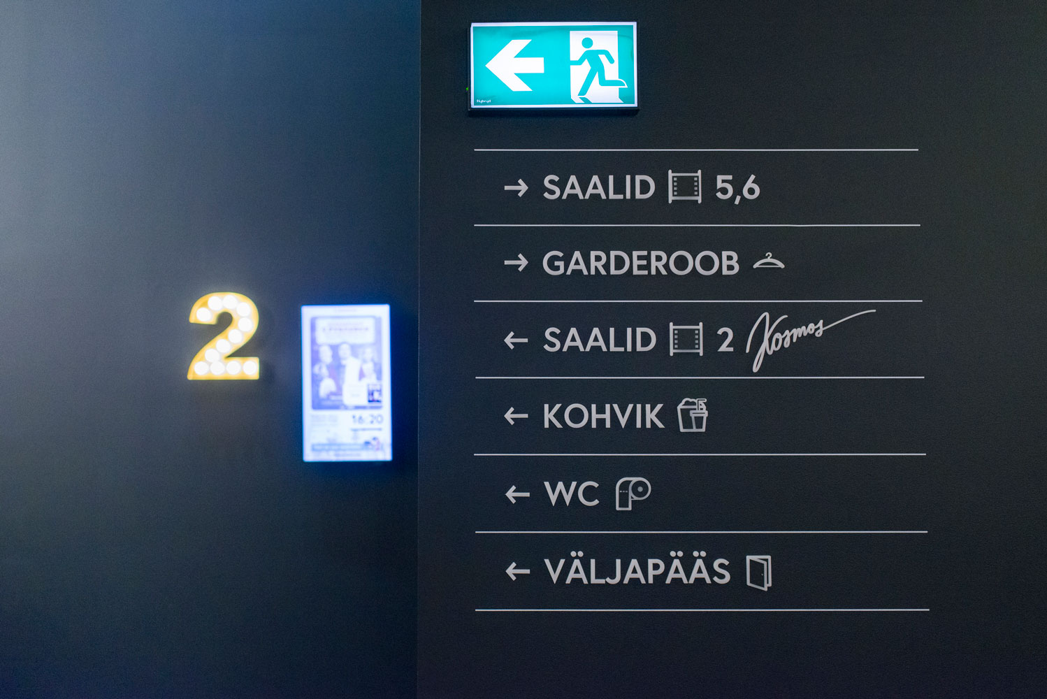 Saalide fookus: Kosmos (252 istet), Saal 2 (200 istet), Saal 3, 4, 5, 6 (102–134 istet).