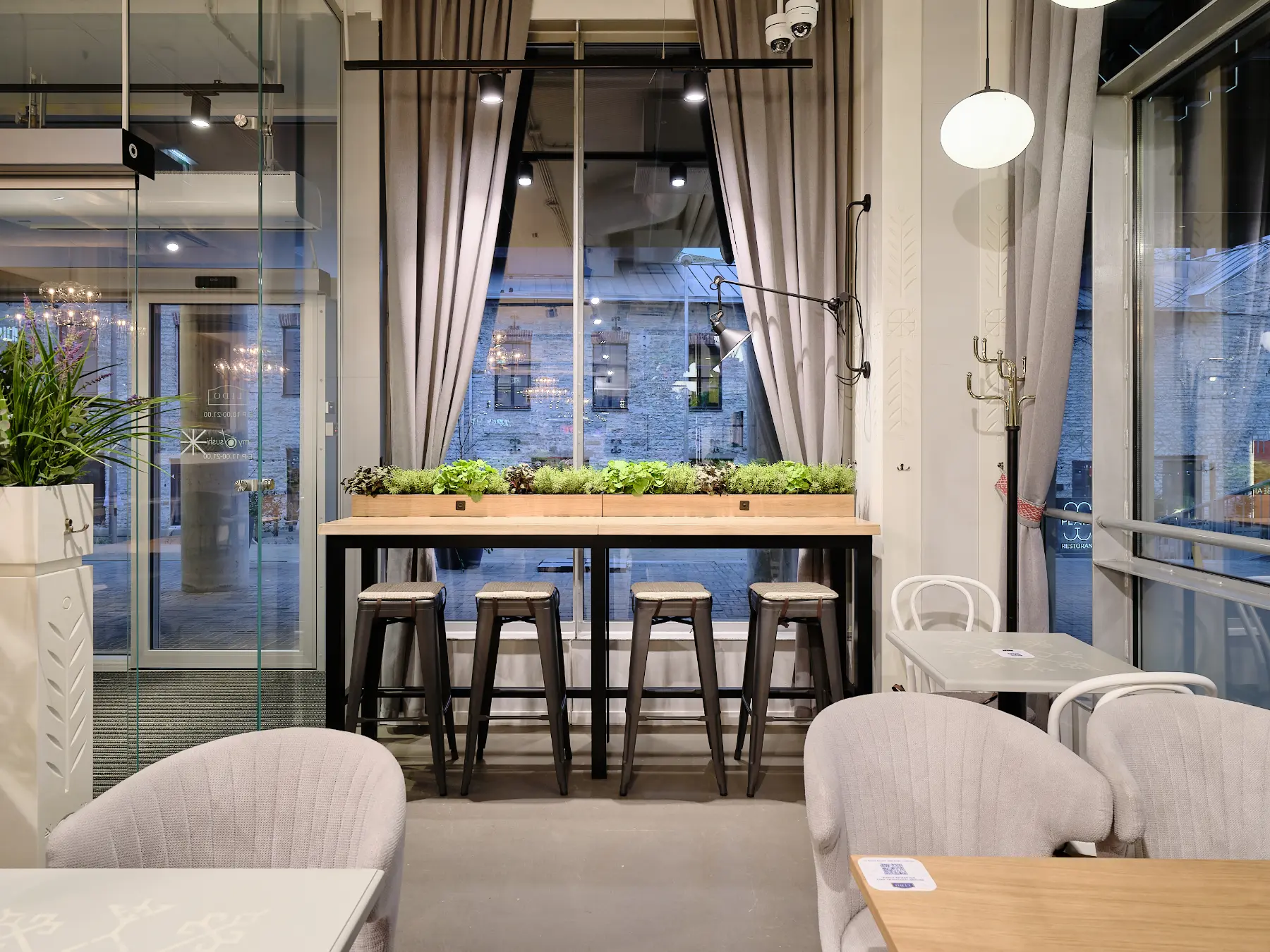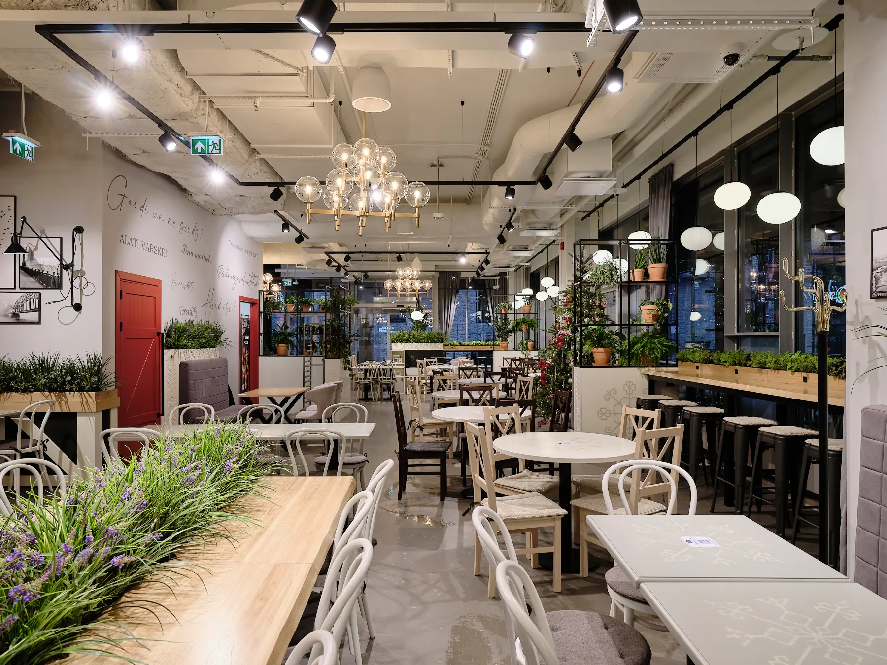 Projekti muutis keerukaks mastaapne köögitehnoloogia integreerimine olemasolevasse hoonesse. Ventilatsioon, rasvapüüdurid ja veesüsteemid pidid töötama laitmatult, ilma et see häiriks ülejäänud maja elurütmi. Tulemuseks 160-kohaline toitlustusala, kus suurköögi võimekuse kõrval on kogu atmosfäär kutsuv ja hubane.